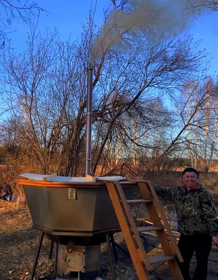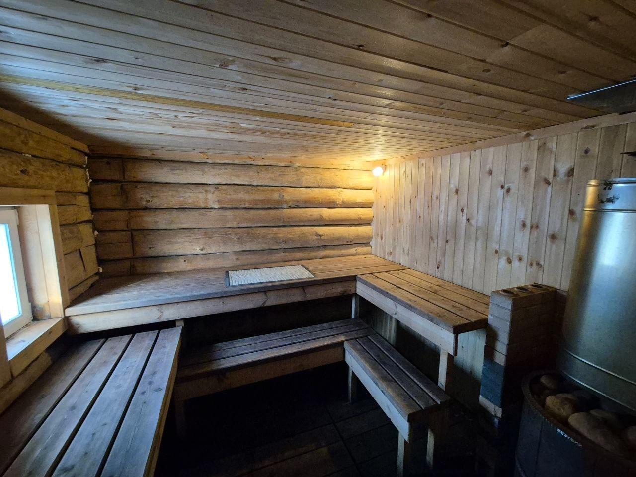 Главная гордость домика — баня с чаном. После жаркой парной здесь можно окунуться в теплую или прохладную купель, добавив в воду душистые травы. Это настоящий SPA, который дарит бодрость и крепкий сон.